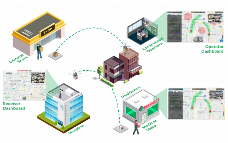 Drones are deployed with drone delivery apps (belonging to delivery businesses) to meet on-demand delivery needs instantly. Such apps regulate the entire process of last-mile delivery that incorporates the pickup of packages from the distribution hub to the final destination.